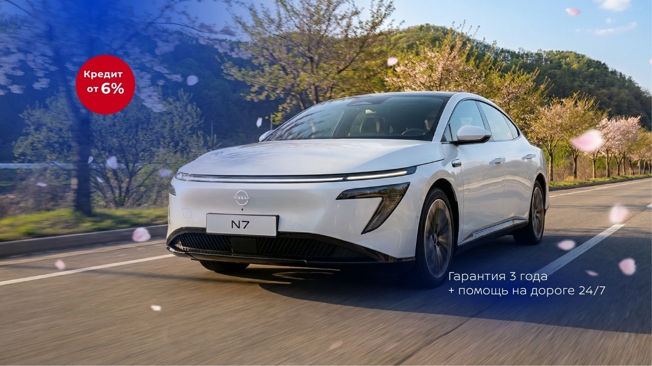 Забирайте технологичный седан Nissan N7 в топовых версиях 510 MAX или 625 PRO по одинаковой стоимости. Кредит от 6% с минимальным авансом и полная уверенность в пути: 3 года гарантии и поддержка 24/7. Успейте забронировать свой автомобиль!